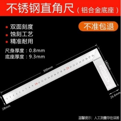 首页 > 建筑建材 > 五金附件 > 不锈钢拐尺/L尺 木工直角尺拐角尺L型尺90度曲尺 双面都有刻度直角尺子(钢角尺300mm(厚度0.8)
