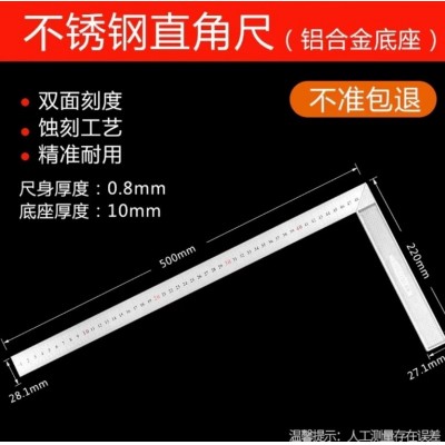 首页 > 建筑建材 > 五金附件 > 不锈钢拐尺/L尺 木工直角尺拐角尺L型尺90度曲尺 双面都有刻度直角尺子(钢角尺500mm(厚度0.8)