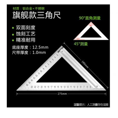 首页 > 建筑建材 > 五金附件 > 不锈钢三角尺200mm 不锈钢直角尺木工尺加厚尺钢板尺