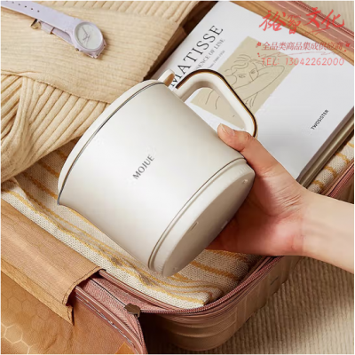 德梵蒂日本旅行便携式烧水壶折叠出差电热水壶家用mini小型宿舍煮水壶烧 米白色