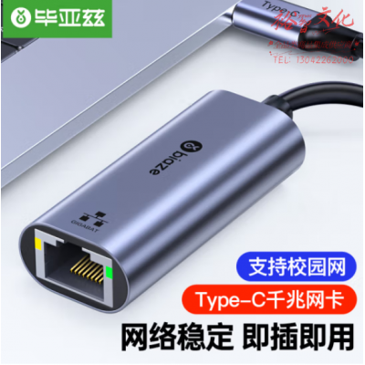 毕亚兹 Type-C千兆有线网卡 USB-C转RJ45网口转换器网线转接头zh141 SKU:yzwhyp808241