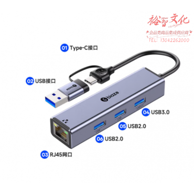 毕亚兹 USB/Type-C双口分线器 百兆有线网卡 RJ45网口转换器 ZH180SKU:yzwhyp808246