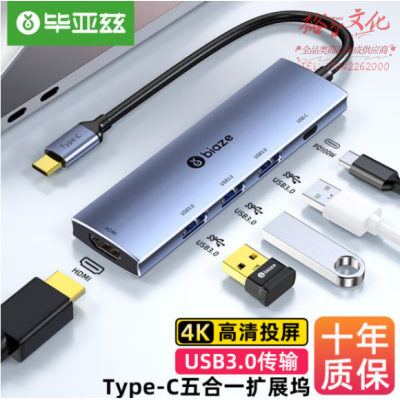毕亚兹 Type-C扩展坞3.0分线器USB-C转接头HDMI线 R41 SKU:yzwhyp808298