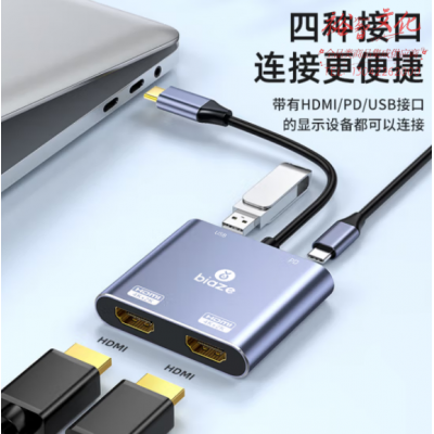 毕亚兹 Type-C雷电4扩展坞四合一 USB-C转双HDMI线转换器 ZH157 SKU:yzwhyp808355