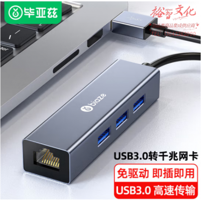 毕亚兹 USB分线器USB3.0 千兆有线网卡 USB转RJ45网线接口转换器 ZH17 SKU:yzwhyp808370