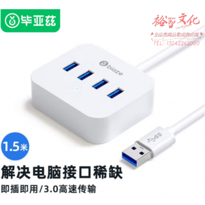 毕亚兹 USB3.0分线器 带电源充电接口 3.0高速4口HUB 多接口扩展转换器 HUB11 SKU:yzwhyp808377