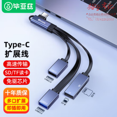 毕亚兹 弯头Type-C转接线USB3.0分线器otg转接头 USB+读卡 HUB51 SKU:yzwhyp808389