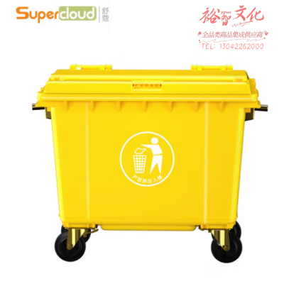 舒蔻(Supercloud)大号商用黄色垃圾桶1100L 加厚物业小区公用室外环保分类塑料带盖医疗环卫户外垃圾桶车酒店 SKU:yzwhyp808418