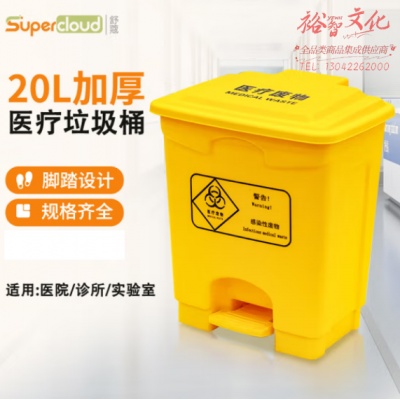 舒蔻(Supercloud) 加厚医疗垃圾桶脚踏款20L 医院诊所实验室专用加厚废物黄色污物桶商用带盖SKU:yzwhyp808421