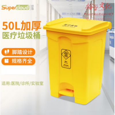舒蔻(Supercloud) 加厚医疗垃圾桶脚踏款50L 医院诊所实验室专用加厚废物黄色污物桶商用带盖 SKU:yzwhyp808440
