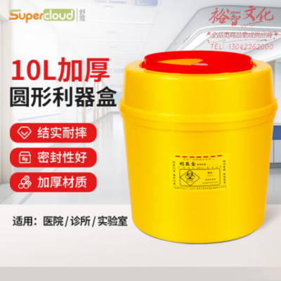舒蔻(Supercloud) 圆形利器盒卫生所实验室医疗用锐器盒黄色废物垃圾桶 10L (SKU:yzwhyp808447
