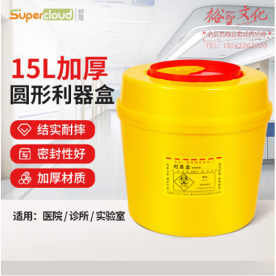 舒蔻(Supercloud) 圆形利器盒卫生所实验室医疗用锐器盒黄色废物垃圾桶 15L SKU:yzwhyp808448