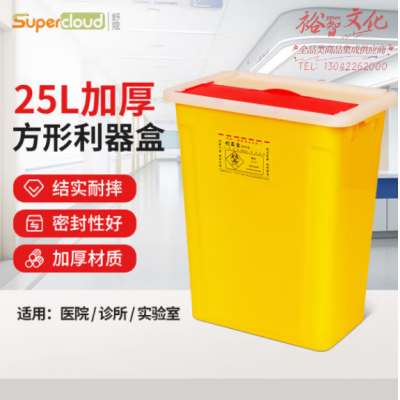 首页 > 用具 > 其他厨房用具 > 舒蔻(Supercloud) 方形利器盒卫生所实验室医疗用锐器盒黄色废物垃圾桶 25L (SKU:yzwhyp808450