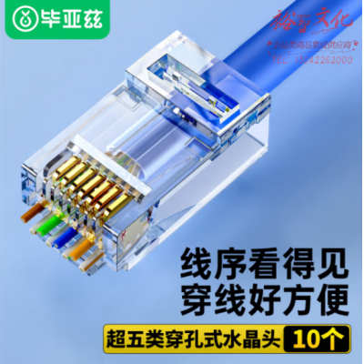 毕亚兹 超五类穿孔式网线水晶头 Cat5e类非屏蔽RJ45网络接头通孔8P8C纯铜镀金10个袋 TT35 SKU:yzwhyp808453