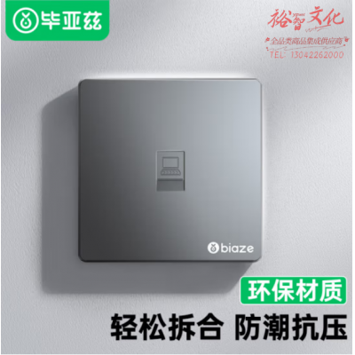 毕亚兹 网络面板 电脑插座网口网线插座面板 适用网络电话信息模块 通用超5/6/7类86型面板灰色单口 1个装 TT52 SKU:yzwhyp808503