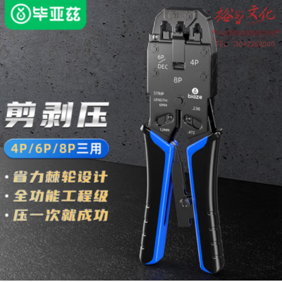 毕亚兹 4P/6P/8P三用网线钳子三用多功能剪剥压网线钳 剥剪压多功能 带助力杆 gj39 SKU:yzwhyp808515