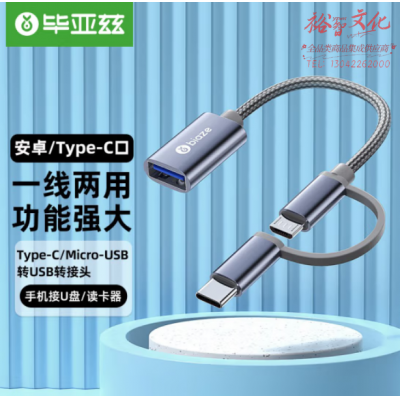 首页 > 广播、电视、电影设备 > 组合音像设备 > 会议、广播及音乐欣赏系统 > 毕亚兹 OTG数据线转接头Type-C/Micro usb二合一安卓手机iphone15pro max接U盘连接线 A56 SKU:yzwhyp808594
