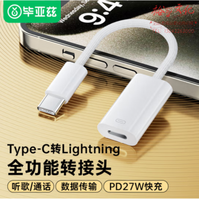 毕亚兹 type-c转换线 支持供电/听歌/通话/数据传输 Lighting母SKU:yzwhyp808676