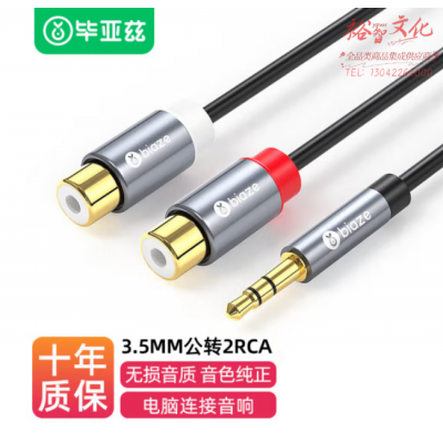 毕亚兹 3.5mm公转2RCA母立体声音频线 5米 3.5对双SKU:yzwhyp808763