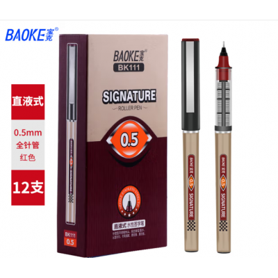 宝克(BAOKE)BK111 0.5mm红色直液式走珠笔针管头 中性笔签字笔水笔 12支/盒