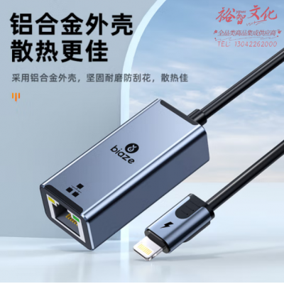 毕亚兹 苹果lightning手机转网口 网线转换器ZH170 SKU:yzwhyp808879