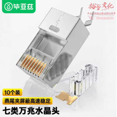 毕亚兹 七类屏蔽万兆两件式7类铜壳水晶头RJ45网线CAT7镀金3U带燕尾夹1SKU:yzwhyp809110