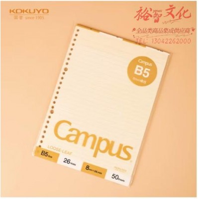 国誉(KOKUYO)B5彩色活页纸Campus活页本替芯笔记本子活页纸内页 8mm横线 50张1本SKU:yzwhyp809151