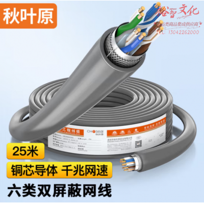 秋叶原(CHOSEAL)六类双屏蔽网线 千兆工程级 纯铜 抗干扰降衰减SKU:yzwhyp809255