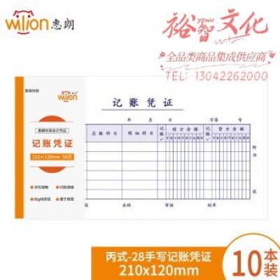惠朗(huilang)丙式-28手写记账凭证 财务手写单据210*120mm 50页/本 10本装 6084 SKU:yzwhyp809360