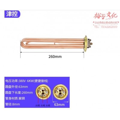 津控 热水器加热管电热开水器加热棒电热管 63mm-紫铜380v6kw(快接) SKU:yzwhyp809423