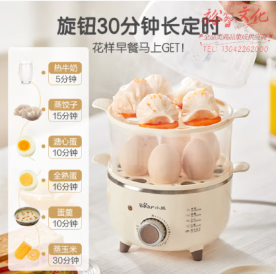 小熊(Bear)煮蛋器 蒸蛋器 旋钮可定时煮蛋羹机 高温断电保护迷你单双层蒸锅 ZDQ-B14R1 SKU:yzwhyp809667
