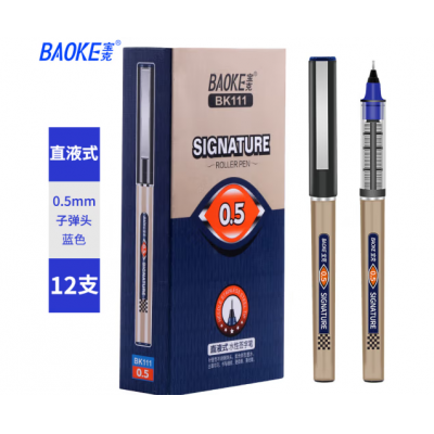 宝克(BAOKE)BK111 0.5mm蓝色直液式走珠笔针管头 中性笔签字笔水笔 12支/盒