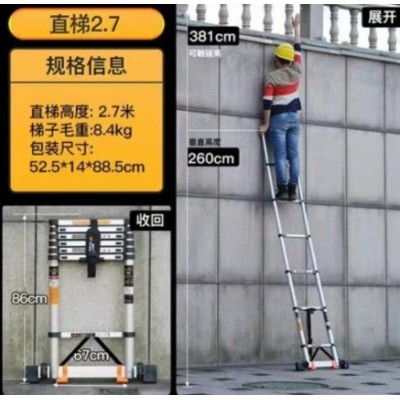 伸缩直梯2.7米【靠墙使用】【带挂钩】德标加厚