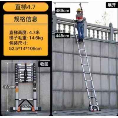 伸缩直梯4.7米【靠墙使用】【带挂钩】德标加厚