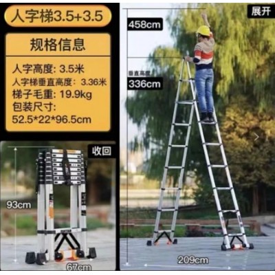 首页 > 建筑建材 > 五金附件 > 【德标加宽踏板】伸缩人字梯3.5+3.5米(无痕)