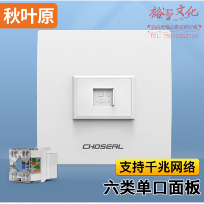 秋叶原(CHOSEAL)开关插座面板 一位六类非屏蔽单口网络信息面板 86型千兆SKU:yzwhyp809880