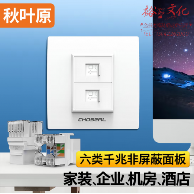 秋叶原(CHOSEAL)开关插座面板 二位六类非屏蔽双口网络信息面板 86型千兆SKU:yzwhyp809881