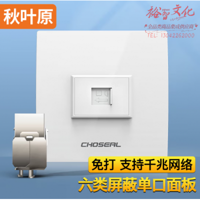 秋叶原(CHOSEAL)开关插座面板 一位六类屏蔽免打型单口网络信息面板 86型千兆SKU:yzwhyp809882