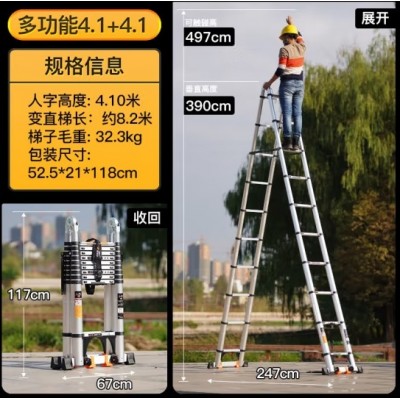 首页 > 建筑建材 > 五金附件 > 【德标加宽踏板】多功能伸缩人字梯4.1+4.1=8.2米(无痕)