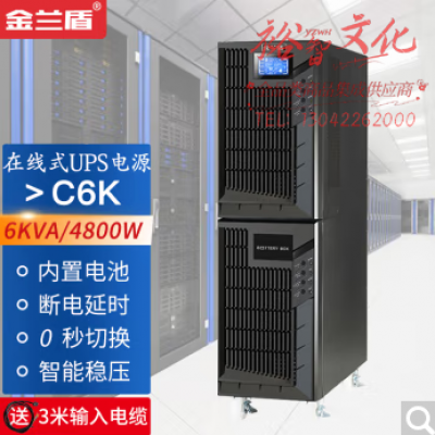 金兰盾C6K在线式ups不间断电源6KVA/4800W企业机房服务器网络设备防雷稳压停电应急后备用电 SKU:yzwhyp809973