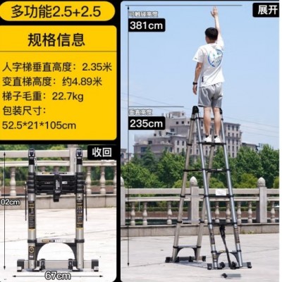 首页 > 建筑建材 > 五金附件 > 【大关节加宽踏板】多功能伸缩梯子2.5+2.5=5(不锈钢款)