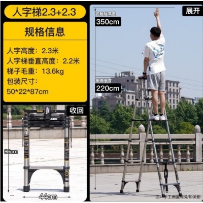 首页 > 建筑建材 > 五金附件 > 【加宽踏板防滑】伸缩人字梯2.3+2.3(不锈钢款)