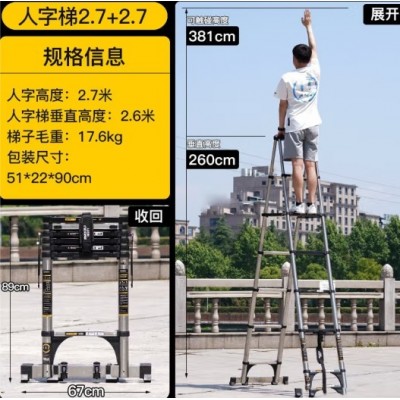 首页 > 建筑建材 > 五金附件 > 【加宽踏板防滑】伸缩人字梯2.7+2.7(不锈钢款)