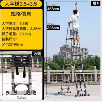 首页 > 建筑建材 > 五金附件 > 【加宽踏板防滑】伸缩人字梯3.5+3.5(不锈钢款)可定制 伸缩梯不锈钢多功能梯子