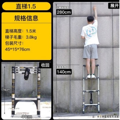 首页 > 建筑建材 > 五金附件 > 【带靠墙防滑垫】伸缩直梯1.5伸缩梯子铝合金人字梯竹节梯折叠梯多功能楼梯升降梯(不锈钢款)