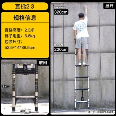 首页 > 建筑建材 > 五金附件 > 【带靠墙防滑垫】伸缩直梯2.3 伸缩梯子铝合金人字梯竹节梯折叠梯多功能楼梯升降梯(不锈钢款)
