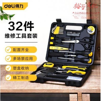 得力(deli)家用工具箱套装电工木工电讯维修组套五金手动工具套装32件套 SKU:yzwhyp810281