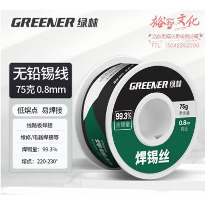 绿林(GREENER)焊锡丝无铅0.8MM环保免清洗99.3%高纯度75g SKU:yzwhyp810374