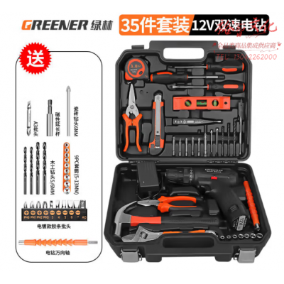 绿林(GREENER)手电钻充电组合多功能电钻工具箱套装 12V双速电钻35件套090161+051072A SKU:yzwhyp810377