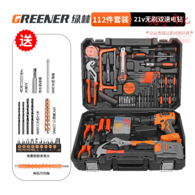 绿林(GREENER)无刷电钻多功能工具箱套装维修组合 21V无刷双速电钻112件090163+051056A SKU:yzwhyp810379